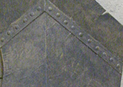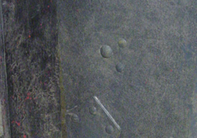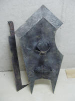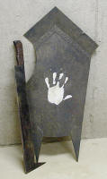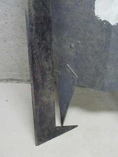 hammered, fire-darkened and rusted metal. In order to achieve a