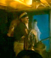 tarnished gold cord across the brim. His outfit is competed with